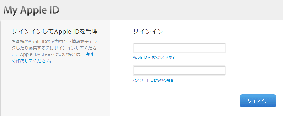 まずは、iPhoneかiPadのようにスマホかタブレットでApple ID管理画面、My Apple IDを表示させます。