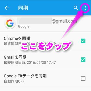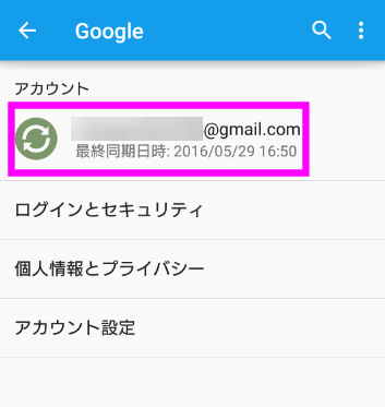 このようにビックリマークがついている場合、何らかの原因で同期できていない可能性があります。