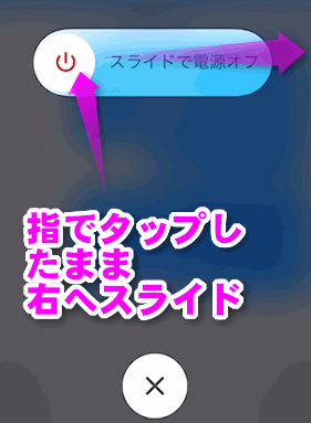 このような画面になるので、赤い丸じるしを指で右へなぞるだけ。