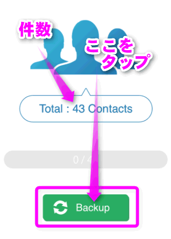 「Total: XX Contacts」の「 XX 」の部分がiPhoneの連絡先に保存されているアドレスの件数です。