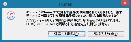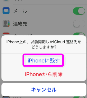 iPhone上の連絡先に保存してあるデータを削除するか残すか選択します。