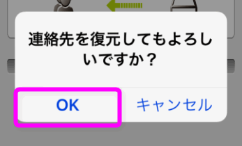 連絡先を復元していいか聞いてくるので、「OK」をタップします。
