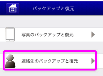 「写真・連絡先のバックアップと復元」というボタンをタップします。