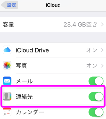 iCloudをオンにすると、自動的に連絡先をネット上に保存します。