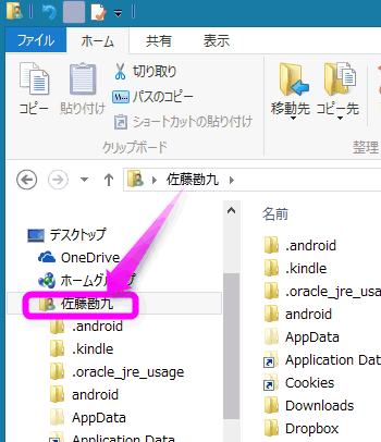 どこにバックアップされたのかというと、「エクスプローラー」を立ち上げ、「デスクトップ」の下にあるユーザー名(パソコンによってここは名前が違います)のフォルダをクリックします。