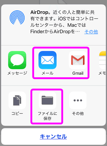 アンドロイドの場合は、下からこのようなメニューが表示されるので、メールアプリをタップしてやはり自分宛てに指定し、送信します。