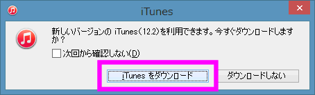 新しいバージョンがダウンロードできる場合は、このような表示になるので、「iTunesをダウンロード」をクリックします。