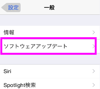 設定を開き、「一般」にある「ソフトウェアアップデート」をタップします。