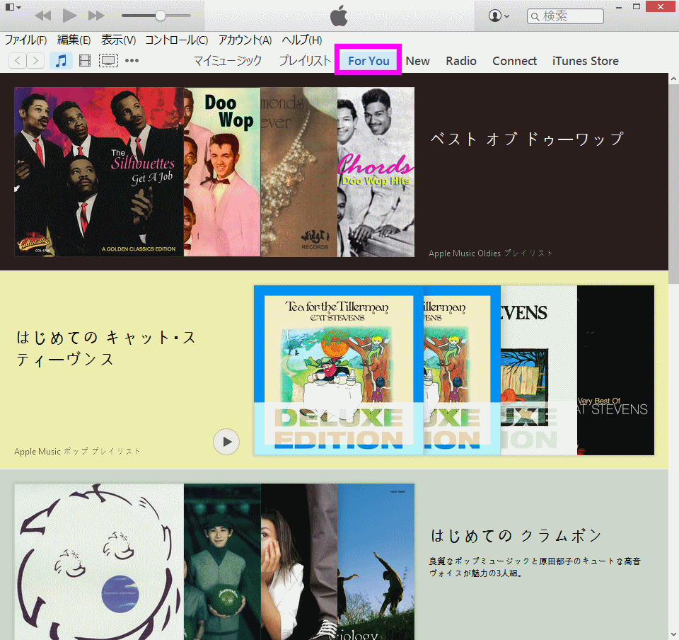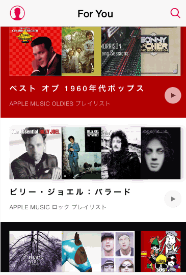 左下の「For You」は、好きなジャンルやアーチストを登録しておくと、自分の好みに合わせたまだ所有していない曲やアーチストを紹介してくれる機能。