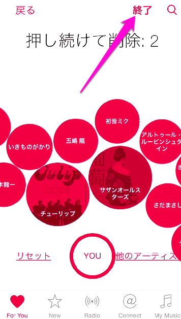 逆に必要のないジャンルや興味のないジャンルは、丸をタップし続けると、削除することが出来ます。
