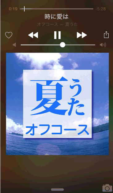 再生中の曲名やコントロールは、画面下の方に表示されるようになりました。
