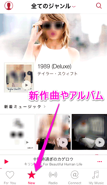 Newは、iTunes Storeに登録された新曲や新しいアルバムが表示されます。