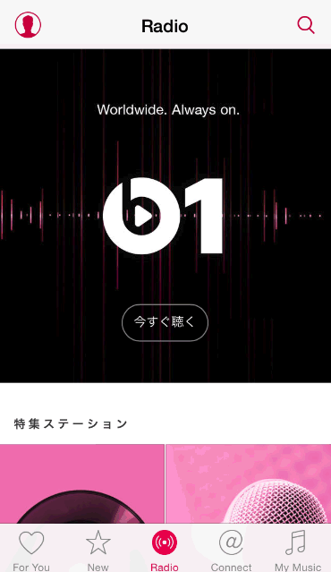 他の「Connect」や「Radio」や「For You」などは後で紹介します。