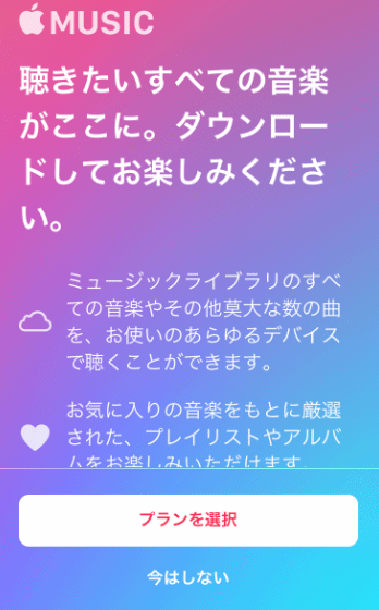 ではさっそくApple Musicの音楽聴き放題サービスを使ってみましょう。