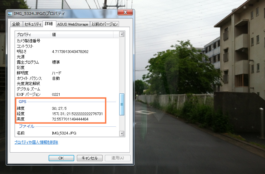 このようにGPSデータが埋め込まれた写真は、簡単に住所を特定できてしまいます。