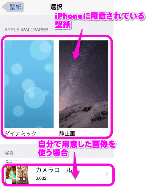「APPLE WALLPAPER」の方は、iPhoneにはじめから用意されている画像です。