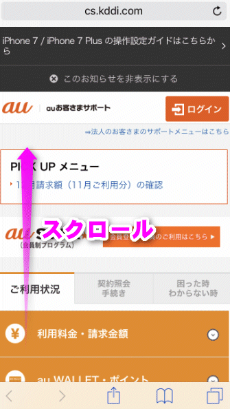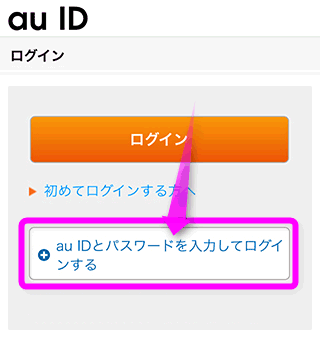「au ID(電話番号か設定した英数字)」と「パスワード」を入力します。