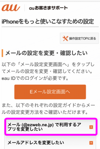 「メール(@ezweb.ne.jp)で利用するアプリを変更したい」をタップします。