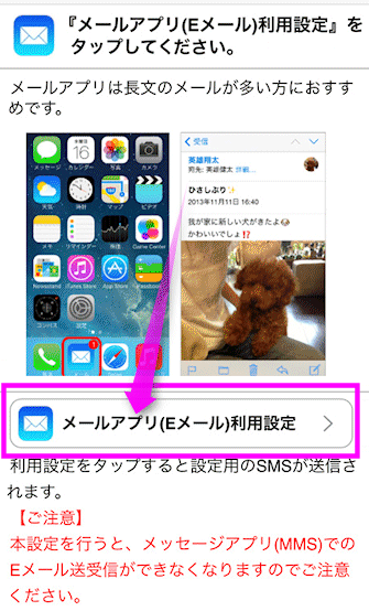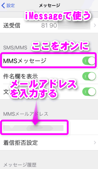 続いてiPhoneの設定をします。iPhoneのMMSの設定へ進んでください。