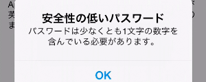 abcdのような単純なパスワードだったり、大文字と小文字、数字などが含まれていないとこのように叱られてしまいます。