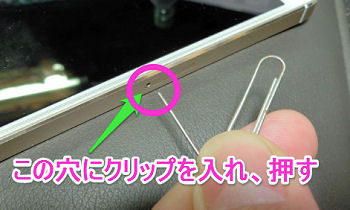 iPhoneの向かって右側の側面に、小さな穴があると思います。ここにクリップのような細い(そしてある程度硬い)針金を差し込み、軽く押すとSIMをセットするケースが出てくるので、ここにSIMカードをセットします。
