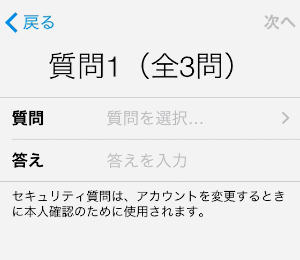 秘密の質問は全部で3つ。必ず設定しないと先へ進めません。