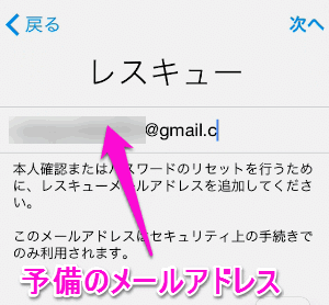 さらに何かあった時のために、予備のメールアドレスを入力します。