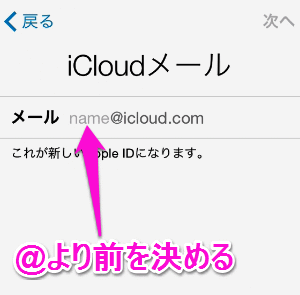すでに誰かに使われている場合は、そのメールアドレスは使えないのでだれにも使われていないものを決めます。