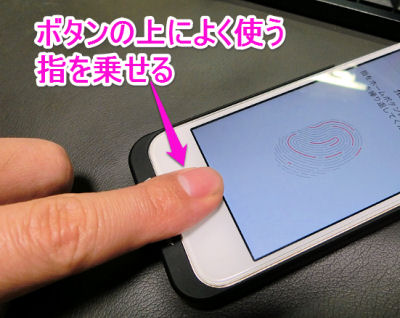 ホームボタンの上によくボタンを押す指(たいていは利き手の親指か人差し指)を軽く乗せます。