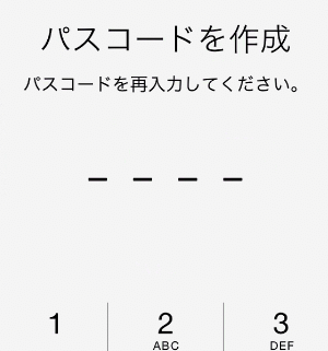 iPhoneをスリープ状態から復帰するときに入力する4桁のパスワード(パスコードといいます)を登録します。