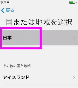 続いて「国または地域を選択」という画面になるので、「日本」をタップします。