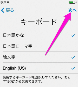 以後、なにか選択したら、画面右上の「次へ」をタップして先へ進めます。