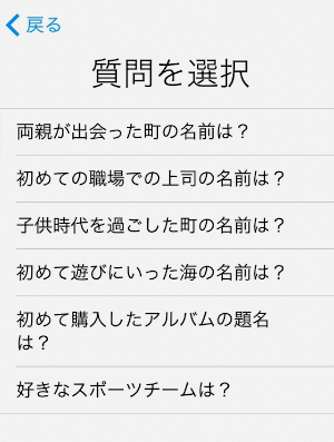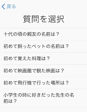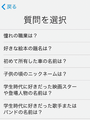 質問が幾つか表示されるので、この中から本人だけが答えられるようなものを選択します。