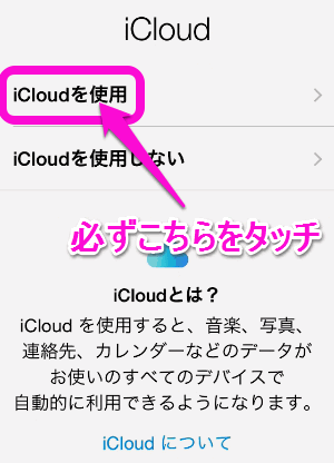 iPhoneやiPadのデータをインターネット上に保存するiCloudを使用できるようにします。