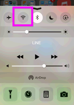 コントロールセンターを立ち上げ、Wi-Fi(■で囲った部分)をオン(白色)にします。