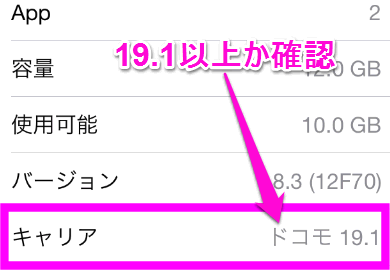VoLTEに対応させるには、iOS以外にもキャリア設定がバージョン19.1以上である必要があります。