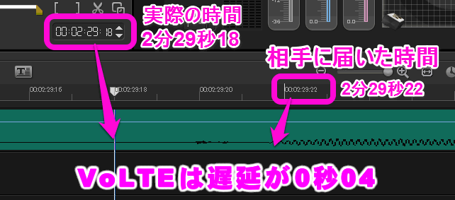 それに対して、VoLTEだと遅延が0秒04~0秒07でした。