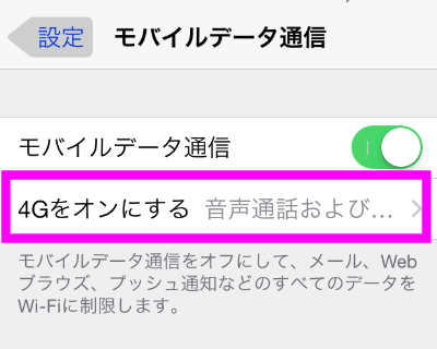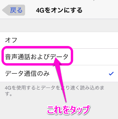 「音声通話およびデータ」をタップすればVoLTEを使えるようになります。