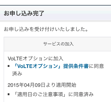 VoLTEの契約が完了しました。