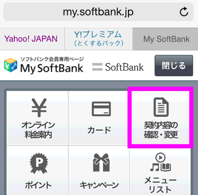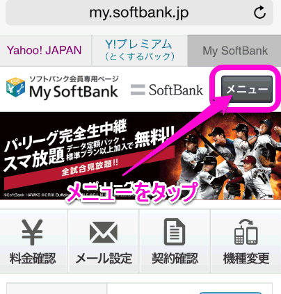 ナンバーブロックの解約はすぐに反映されます。右上の「メニュー」をタップします。