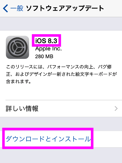 もし、iOSのバージョンが8.3以前だった場合、アップデートする必要があります。