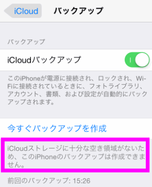 このように「iCloudストレージに十分な空き容量がないため、このiPhoneのバックアップは作成できません」という表示の場合、データが多すぎてバックアップができない状態になっています。