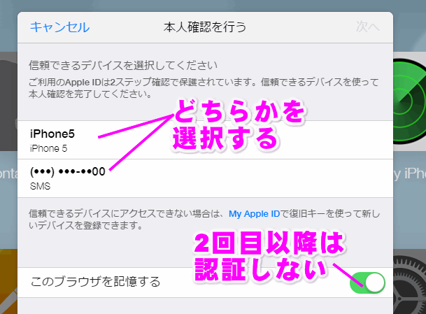 次回からこの確認を省略する場合は、「このブラウザを記憶する」をオンにしておきます。