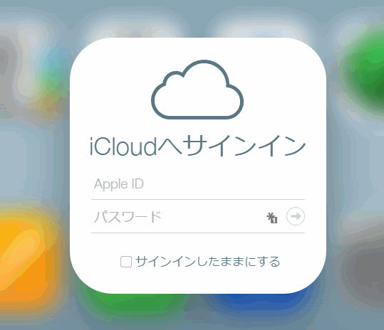 パソコンからiCloud.comにアクセスし、「Apple ID」と「パスワード」を入力し、ログインします。