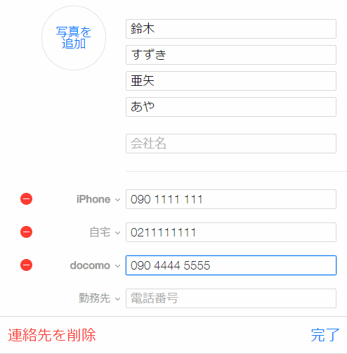 「写真を追加」をクリックすると、連絡先に相手の写真を設定することもできます。