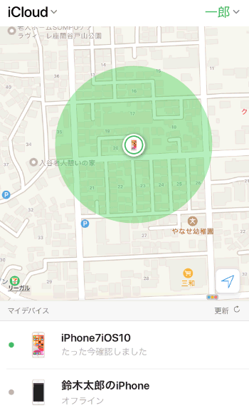 この探すはiCloudにログインしていると自動で位置情報を反映し、今どこにあるか探すことができます。