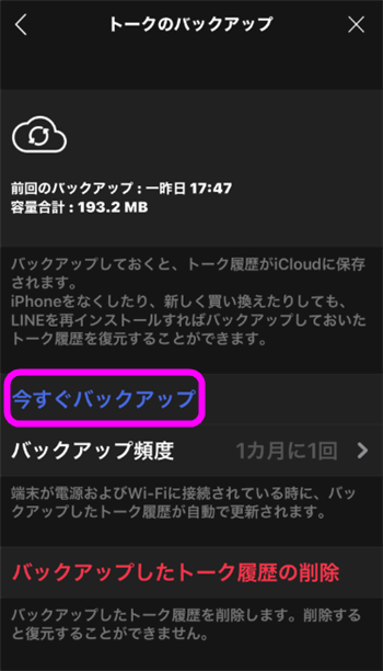 デフォルトですべてがオンになっているので、保存しなくていいデータは、オフにしておくと容量をセーブすることができます。