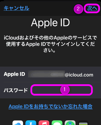 パスワードを忘れてしまった場合は、Apple IDのパスワードを忘れた場合の復元を参考にしてください。