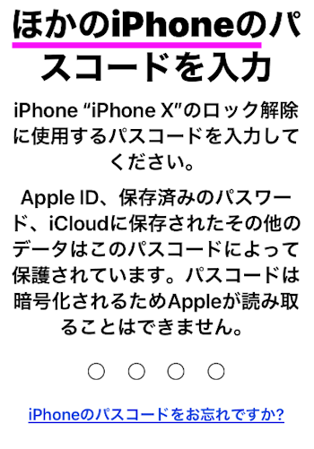 iPhoneを複数持っている場合は、他のiPhoneのパスコードを求められる場合もあります。