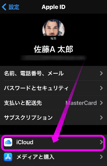 iCloudの詳しいデータを見るには「iCloud」をタップします。